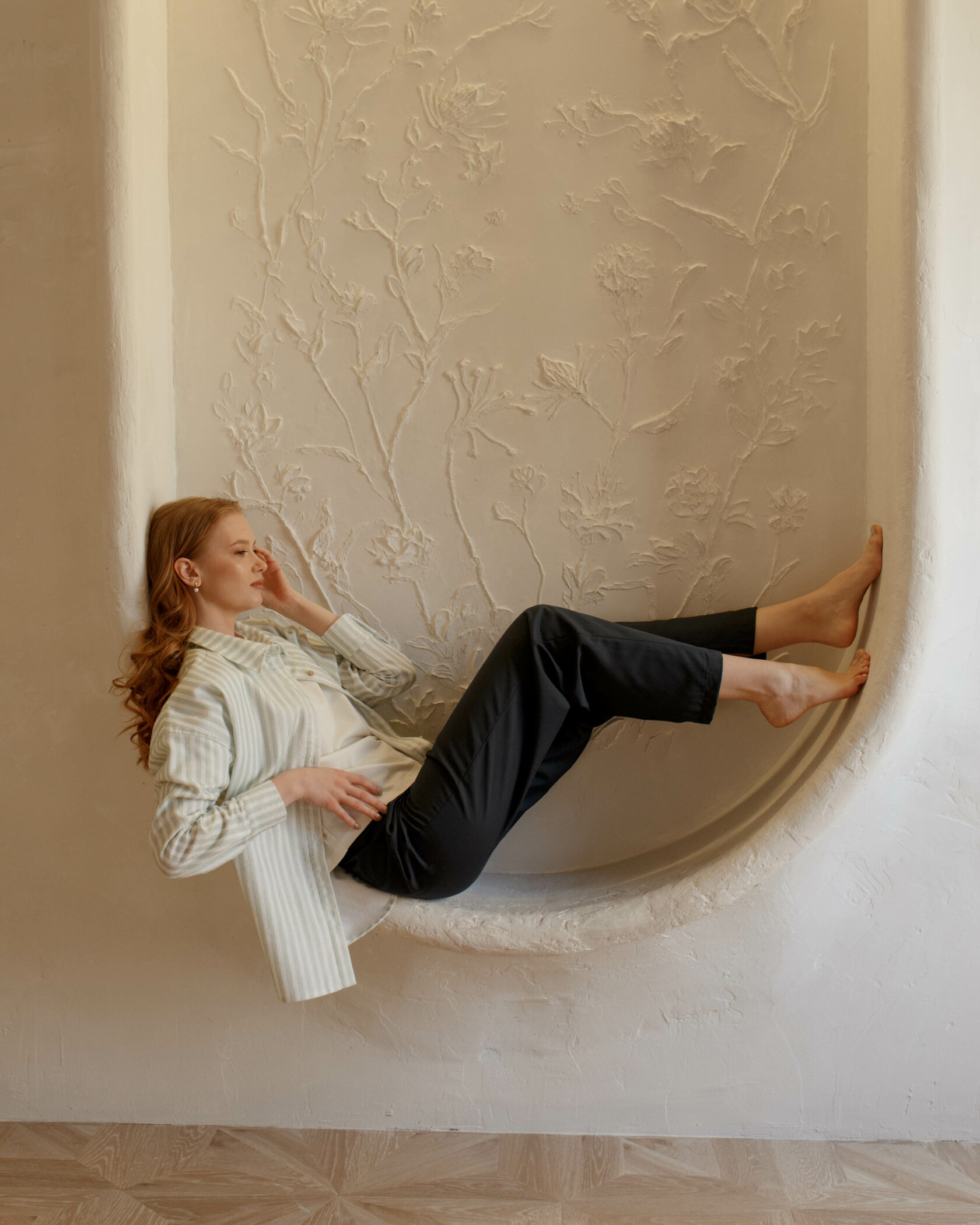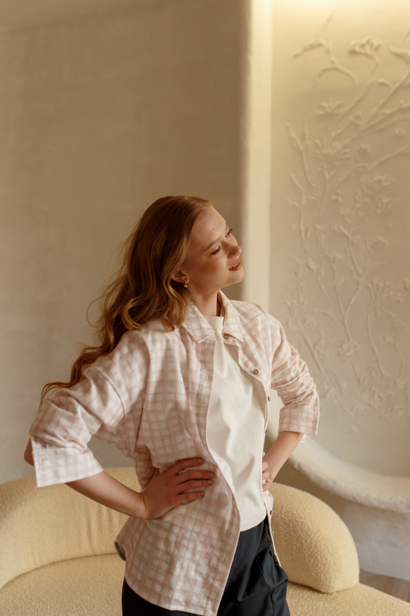Длинный рукав с манжетами на кнопках, острый отложной воротничок. Мягкая, нежная, матовая ткань.