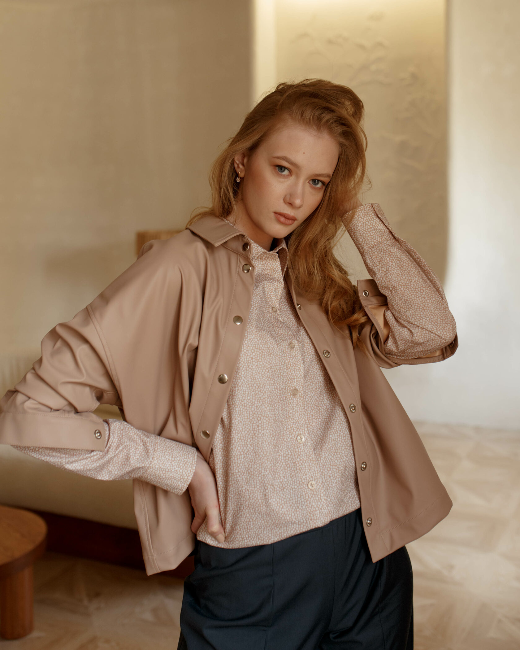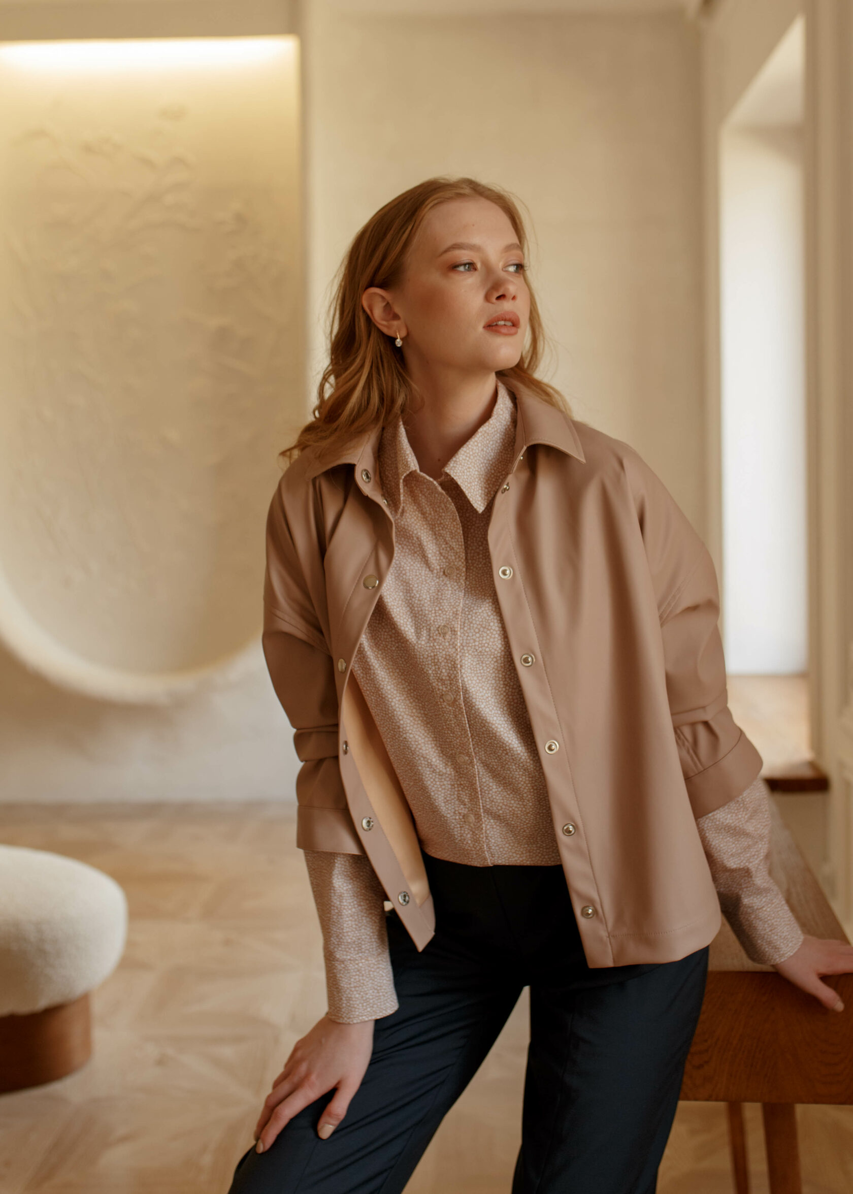 Продуманный крой, ткань высокого качества, пошив, выполненный с любовью– всё это вы найдете в нашей рубашке из экокожи.